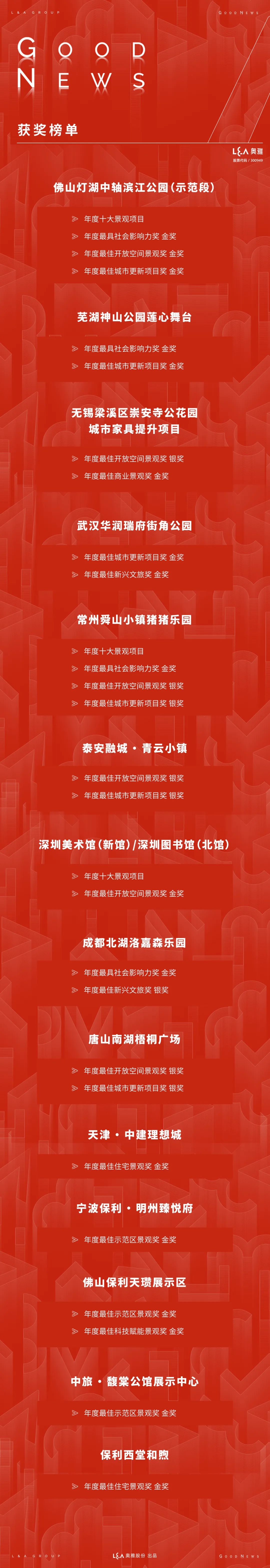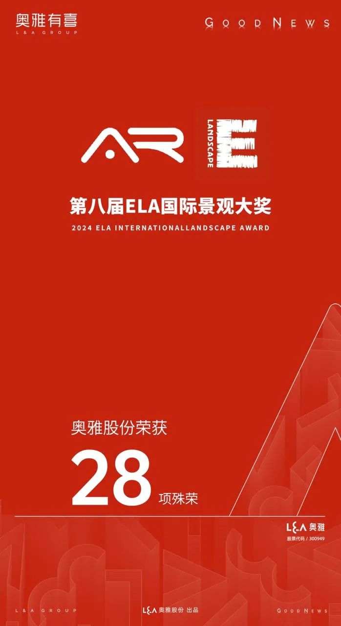 第八届ELA国际景观大奖获奖名单正式揭晓。奥雅股份(股票代码:300949)作品凭借在创意设计和亲子文旅领域内的杰出表现脱颖而出,斩获28项行业大奖。