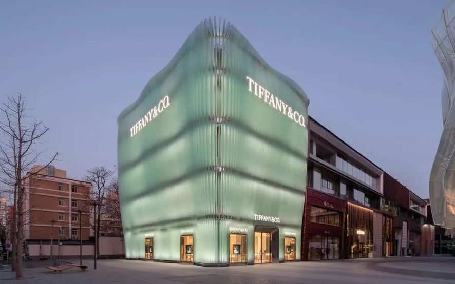 MVRDV最新完成了Tiffany & Co. 蒂芙尼前滩太古里店的立面设计。以品牌著名的珠宝设计为灵感,店铺外墙由6,988颗手工制作的玻璃“钻石”组成。白天,“钻石”或反射或折射周围环境的光线,闪耀夺目;到了晚上,LED照明为立面投射出熠熠光辉。