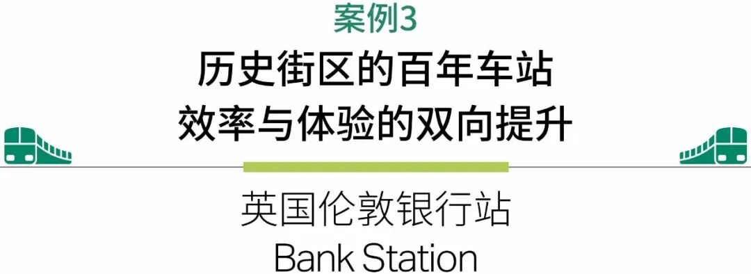 调整布局,提升换乘体验:改造前,银行站存在布局混乱、空间局促问题,导致拥堵频发、换乘耗时较长。为此,改造进行了一系列调整:新增一条北线(Northern Line)南行隧道,从而有效扩容站台空间,缩短乘客换乘时间;站内新增两条自动步道,连接北线与中央线(Central Line)站台,优化站内通行路径;另新增三组自动扶梯,分别实现北线与中央线、DLR 及地面的便捷连通,全面提升换乘效率。