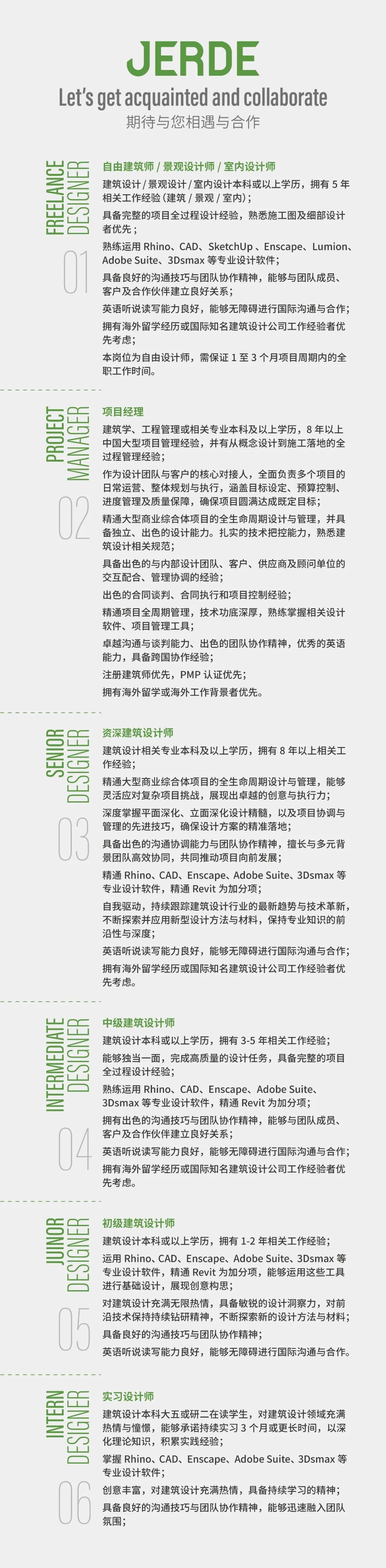 以匠心工艺为傲,拒绝千篇一律的设计模板,我们正在寻找一群怀揣创意、志同道合的伙伴,一同在JERDE捷得上海办公室开启设计新征程。