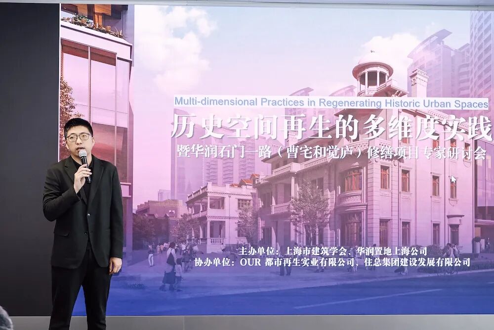 OUR上海都市再生副总建筑师曹琳以《深植历史,面向未来——华润石门一路曹宅与觉庐修复设计》为题,诠释了团队在修复营建中采取的“张园之门、高技对话、新旧共生”三大策略,实现了文化传承与空间再生的有机统一。