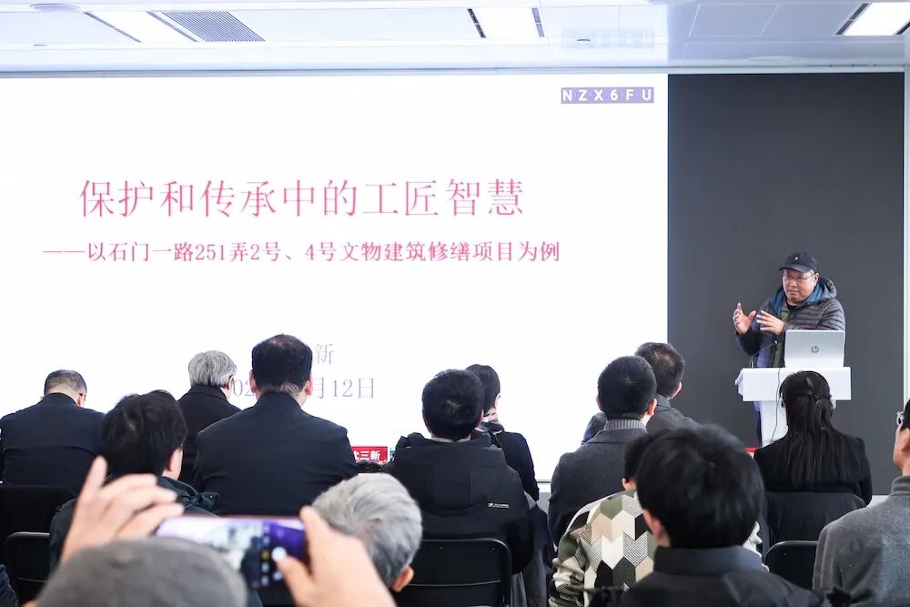 上海住总集团建设发展有限公司原总工程师沈三新以《保护和传承中的工匠智慧》为题,详细讲述了住总团队在修复过程中如何传承传统技艺匠心。通过系统的当代施工技术,克服了结构转换、构件复位等工程难题,最终让百余个历史构件在历史空间中重获新生。