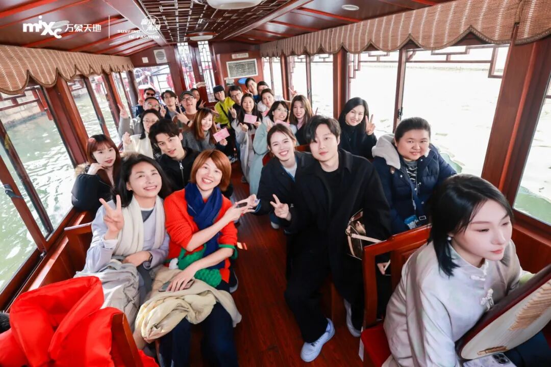 游船雅集,沉浸式触摸姑苏文脉。签到结束后,嘉宾们乘坐游船沿上塘河缓缓前行,串联起山塘街等古城地标,沉浸式感受姑苏水文化的独特魅力,体验江南雅趣的闲适意境。据悉,该游船线路作为姑苏古城文旅名片,已累计接待游客超16万人次,是串联文商旅资源的重要纽带,此次体验也让嘉宾们在潺潺流水间,提前感受了苏州万象天地“古今共生”的项目底色——作为苏州华贸中心的核心商业载体,该项目坐落于姑苏区阊门外,毗邻众多千年景点,自开业以来便以“MALL+街区”的创新形态成为现象级商业标杆,开业四天客流即破百万,更以近350家高品质品牌矩阵,成为引领姑苏潮流生活的全新目的地。