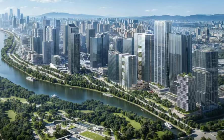 项目坐落在黄埔区鱼珠湾商务区,设计基于城市滨水风貌,从企业对空间与功能的客制化需求出发,打造面向未来的办公总部综合体。