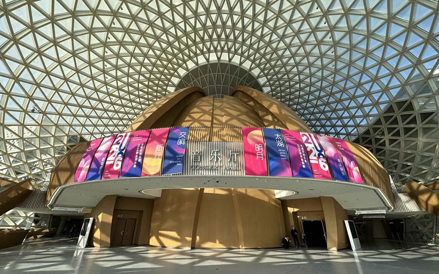无锡交响音乐厅以“太湖明月”为设计灵感,内设1500座音乐厅、600座多功能厅等,并配套建设艺术交流与演艺商业中心。