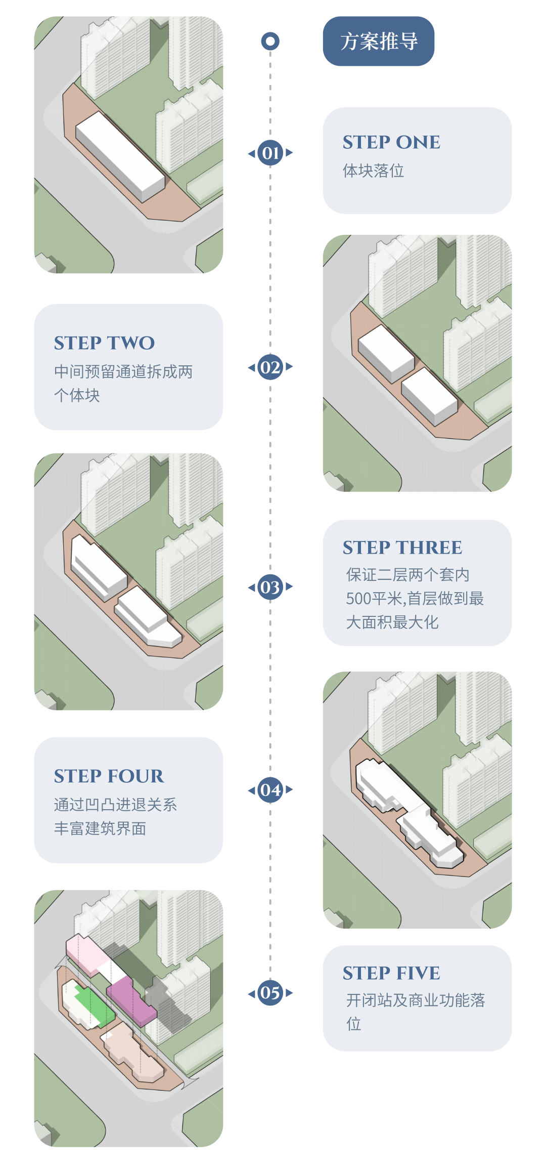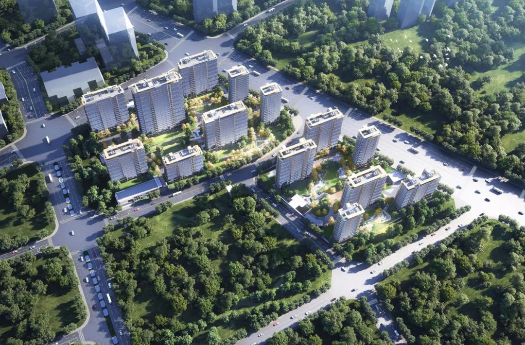 住宅南北向点状错动排布,不仅保证每户采光充沛,同时又能最大程度的享受社区景观,保证每一栋住宅都有均好的景观资源。东侧靠近城市主路的楼栋最大可能的退距,尽量避免城市道路对住宅的噪声影响,西侧界面通过建筑的错动,形成了尺度宜人的城市公共界面。