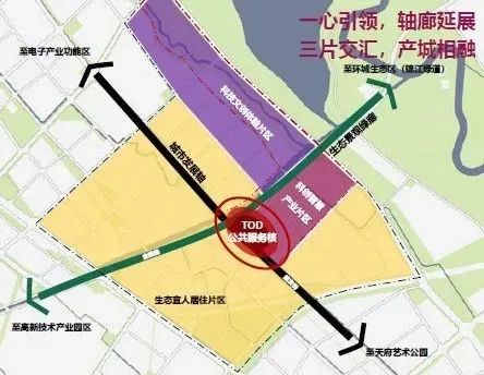 上位规划中,本项目用地属于科创智慧产业片区;项目综合考虑片区外部空间设计,以生态景观廊道串联片区地块,西接TOD公共服务核,东接环城生态带,优化慢行交通舒适性与便捷性,提升片区外部空间吸引力。