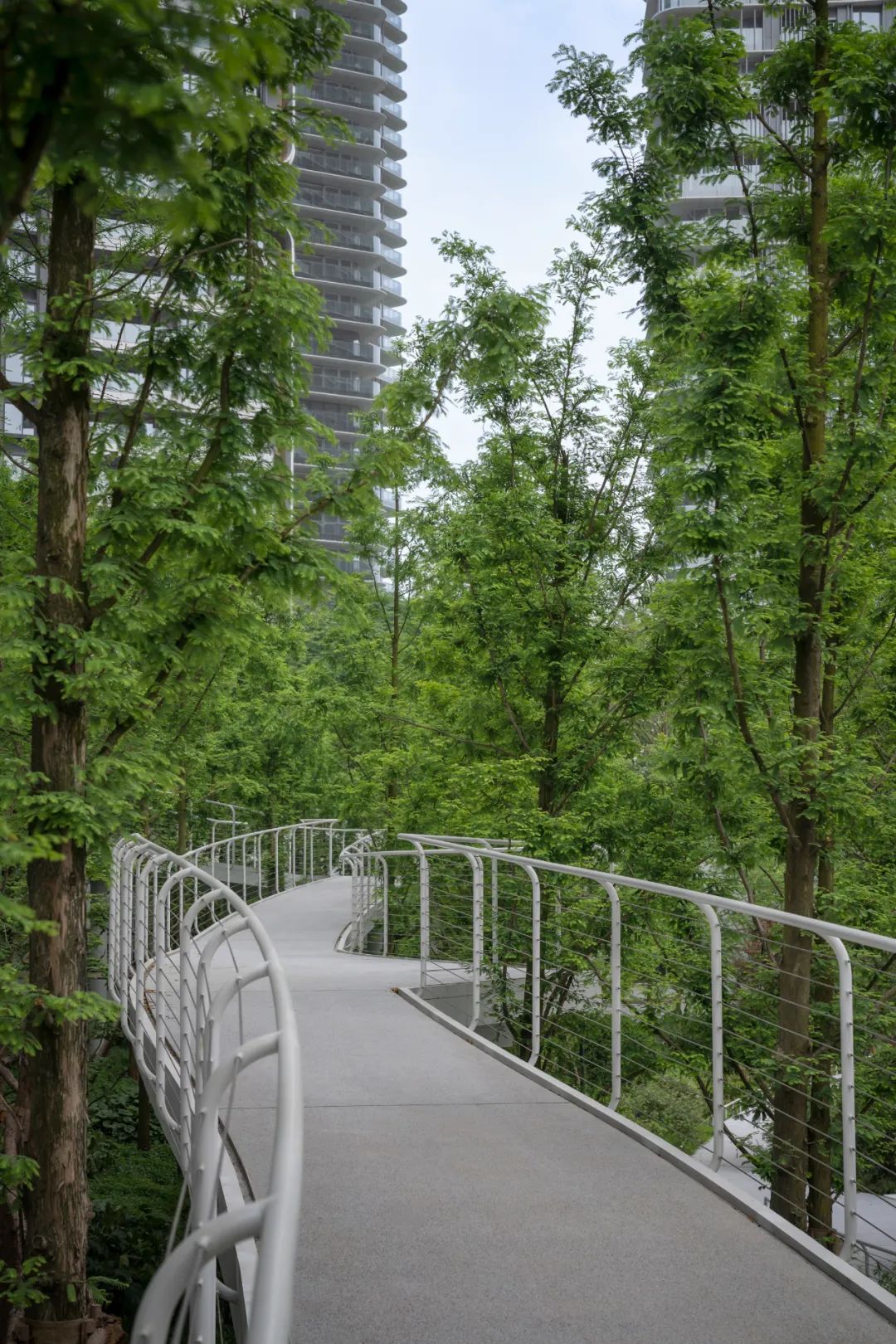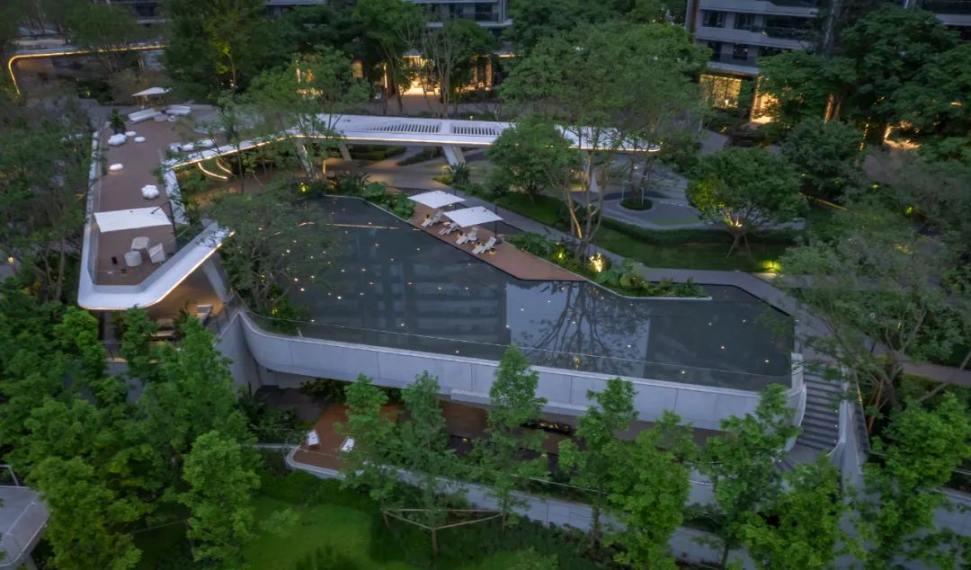 沄洲项目位于成都南部麓湖国际生态城,紧邻天府大道,周边自然条件优渥,南湖湿地公园、天府公园仅在咫尺之遥,具有良好的观景视野以及公共参与的亲水体验。在项目中,我们打造意在凸显自然之境的度假场景,通过南北中庭、临湖带及峡谷带的串联设置,保留场地高差形成自然峡谷意象,置入空中栈道解锁空间穿行体验,破解围墙实现绿地融入生活的共享……