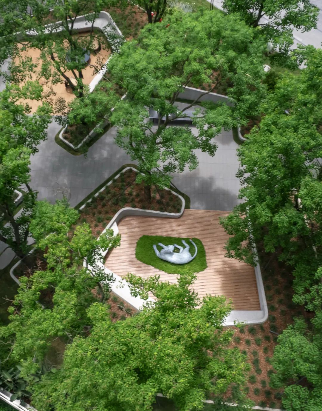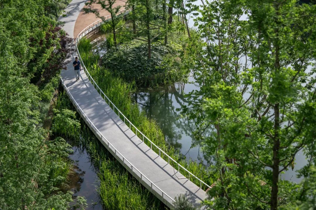 在临湖区域,社区打开着看不见的“门”。我们对项目边界进行了破除,让场地周边的生态绿地,如液体般渗透进社区肌理。人们可于此自由地穿梭于家与公园之间,享受自然与城市的双重馈赠。