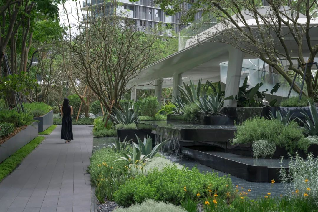 场地中,具有深刻寓意的雕塑叙事,与精心配置的植物景观相得映彰,延续了麓湖系列项目生态自然的整体风格,给人留下深刻印象。