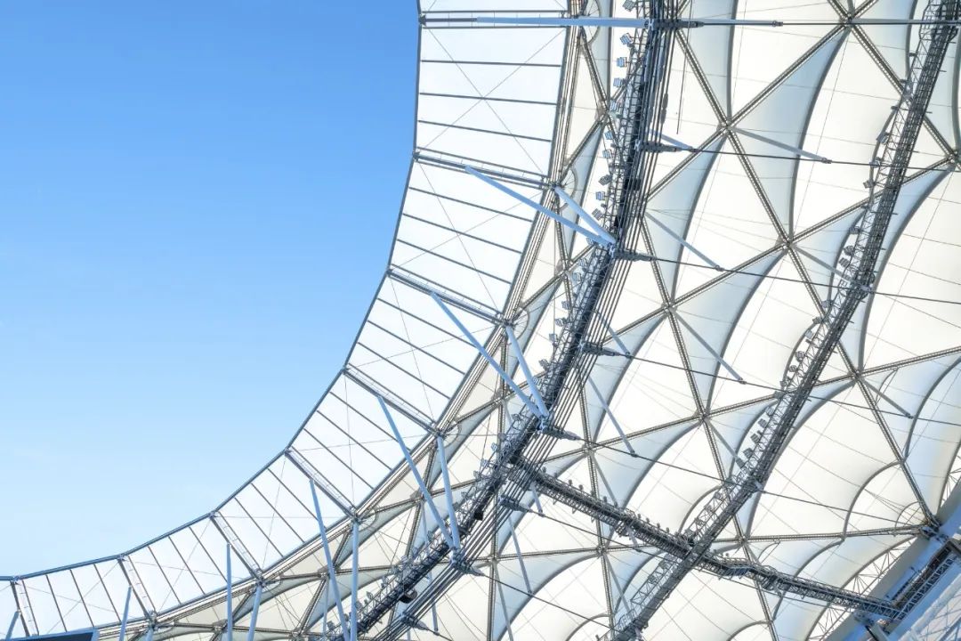 索结构与膜材结合的屋面及立面结构能够最大程度地减少结构的重量,并可以在施工现场快速安装,提高项目的经济效益并减少施工过程产生的碳排放量。球场内还使用全电加热系统和节能空气源热泵,以及节能照明,能有效减少运营成本。