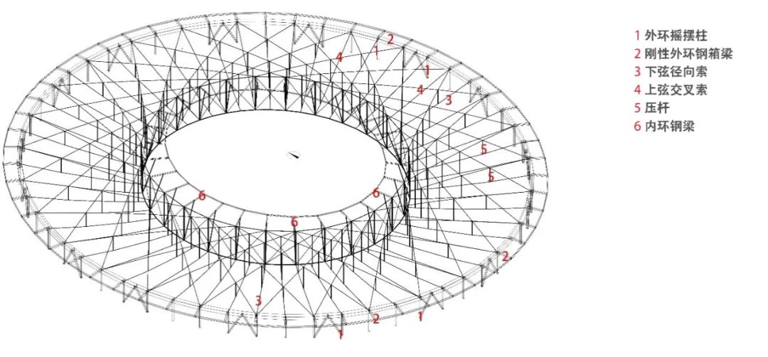 △ 悬挑梁+直纹曲面索网体系示意 ©非域之境Atopia工作室