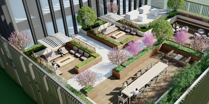 通过绿色生态的技术手段打造空中屋顶花园、茶歇区、室内健身场所等减压空间;同时通过生态融合理念构建室内氧吧、共享书吧、城市农植角等绿色社交空间,全面提升环境舒适度和体验感。