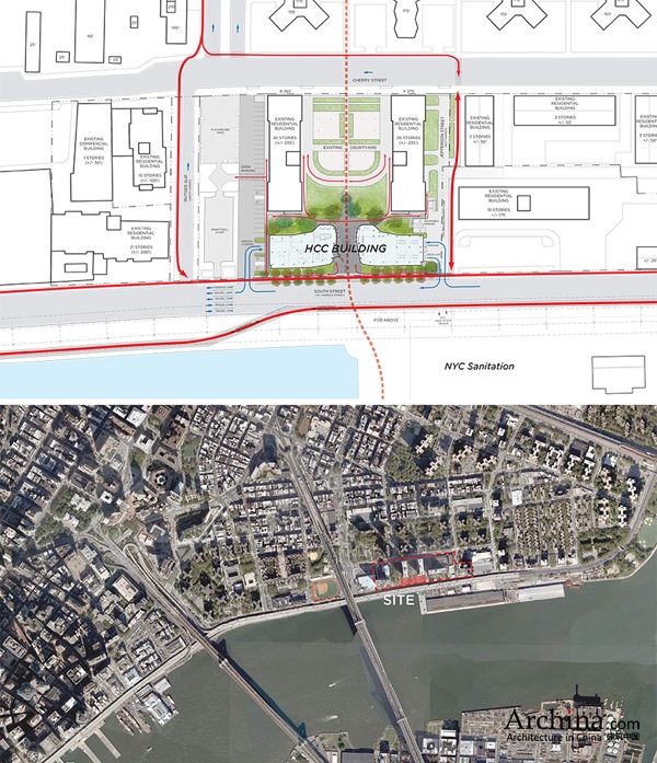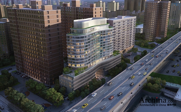 FXFowle发布了曼哈顿下东区的东河附近即将兴建的一个新医疗设施的透视图,即创新姑息治疗国家中心,该项目将是一个低收入和市价租户的辅助生活社区。