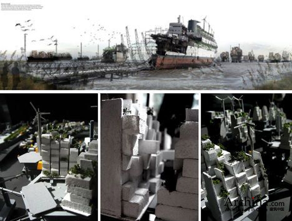 诸如英国这种离岸型国家和城市,如果也成为气候变化的受害者,人们将去哪里呢?或许他们只能撤到废弃的钻井平台上和回收利用的船体上。设计师安东尼·劳认为:“由于存在大洪水的威胁,离岸的漂浮城市、移动的基础设施以及水上交通工具将成为城市的组成部分。波浪、潮汐能、风能将是漂浮城市的理想能源,居民将逐渐适应大自然和江河湖海的节奏。”