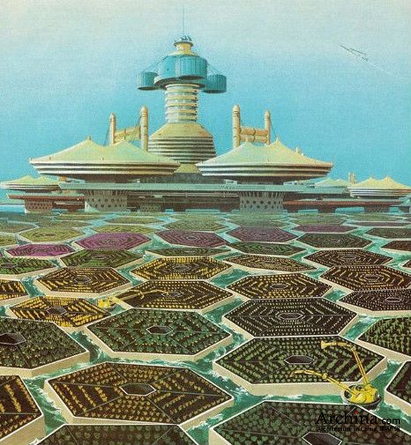 1984年,沃尔特·迪斯尼对2050年近海农业区的农业发展发生了兴趣。他出版了一本名为《农业的未来世界》的书,设想了未来的海上城市,机器人负责照顾漂浮平台上的农作物。海水蒸发淡化脱盐后进入平台底部滋养农作物。