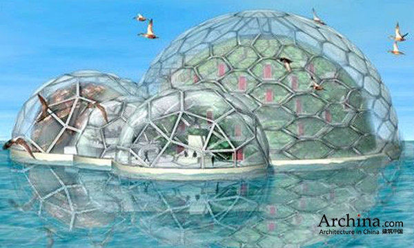 上海世博会展示的“漂浮之城”荷兰设计师向上海世博会推介的设计——在黄浦江面上建造一座由半球型结构相连接组成的实验性城市。这座城市包括多功能礼堂、3D电影院、酒吧,远远看去是蜂巢(小区网 论坛)的形状。它可以把黄浦江当作一块太阳板,借助江水吸收太阳能,自供能源取暖或降温,并利用江水的天然温度调节功能。另外,可以通过修建高速公路和地面保持交通。