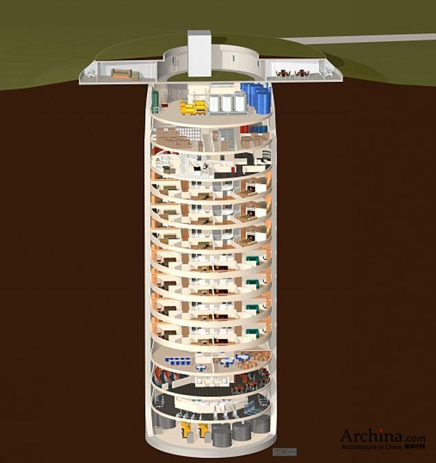 霍尔的"世界末日避难所"不仅仅是一个地下避难空间,他在原来深53米、厚约2.74米、可抵御核武器袭击的混凝土火箭发射井内又进行了加固处理,而且将其分割成了14层空间,其中7层将被改造成公寓式套房。买家可出200万美元购买整层空间,或者出一半的钱购买其中半层空间。目前,已有3层半售出,买家正是前述4人,另有两个买家正准备签订购买合同。