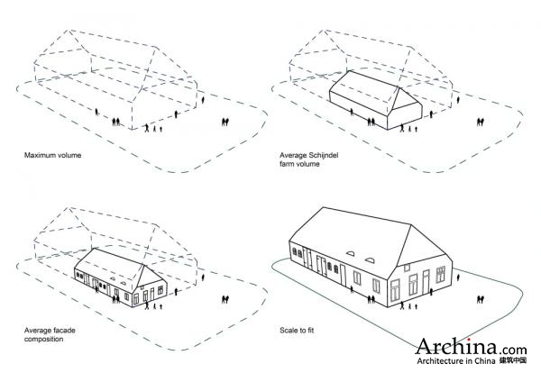 参照了传统的农舍风格,MVRDV与Frank van der Salm合作,在玻璃立面上印刷了艺术家拍摄的历史性农庄建筑的照片。这是利用烧结程序制作的特殊效果,为传统的农舍带来了现代化的意味。