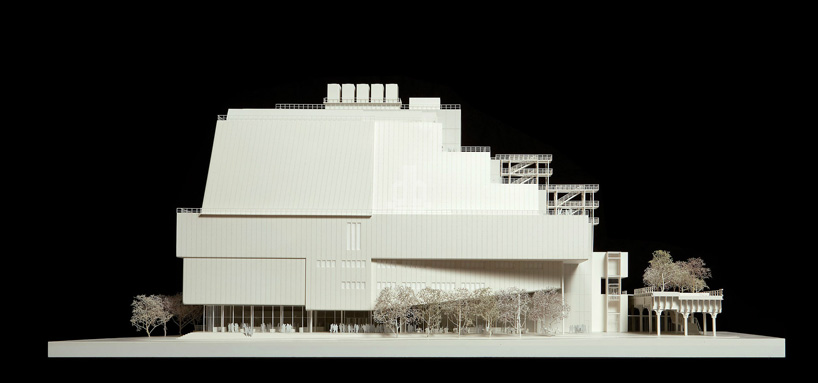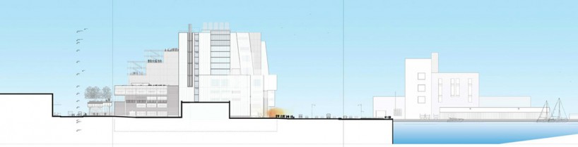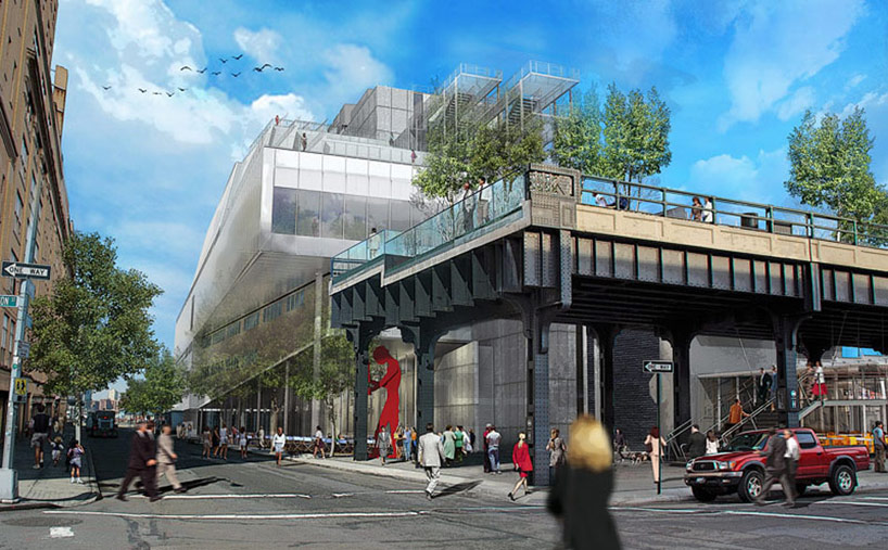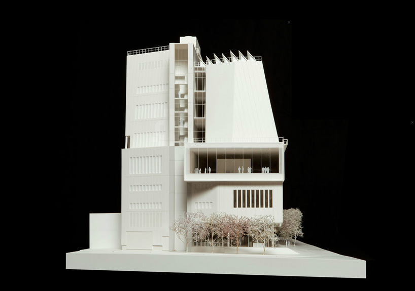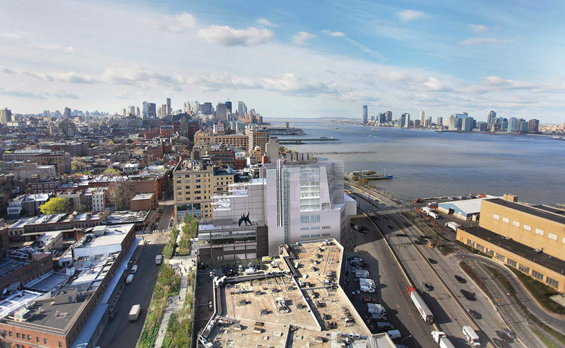 围绕特色大楼梯,这幢以结构创新为特色的大楼拥有一个18000平方英尺(约为1672平方米)的临时展览空间——是全纽约最大的无柱画廊。哈德逊河的风光透过落地玻璃窗而尽收眼底,白色墙壁上的圆形孔洞则在建筑内部形成了大量光线漫射的效果。博物馆的永久收藏能力也得到了提高,共19000件顶级作品至少需要20000平方英尺的空间。室内外空间通过咖啡厅和视觉上的渗透而达到同等的艺术效果。设有一个研究中心和实验室以为展览提供资源支持,而灵活舞台的设置则使剧院能适应各种演出需求。