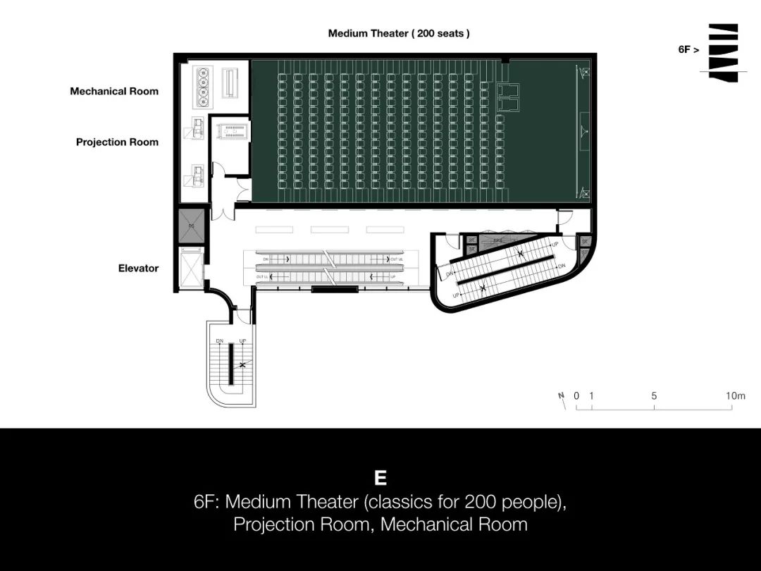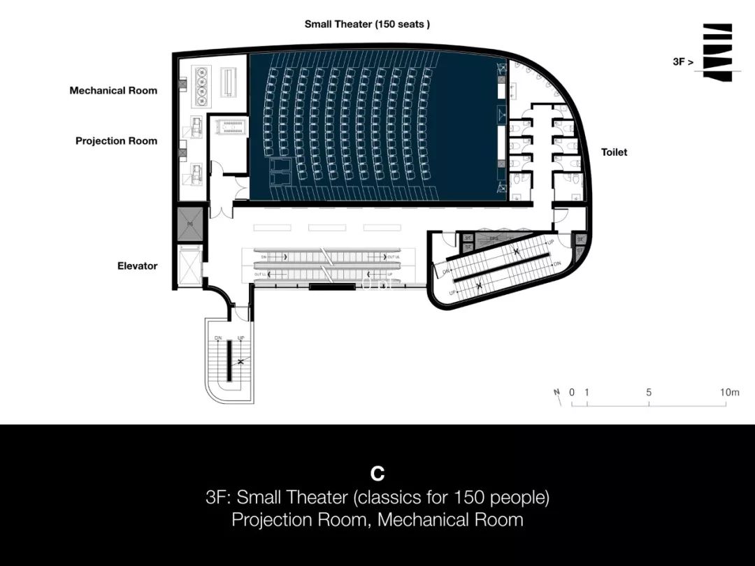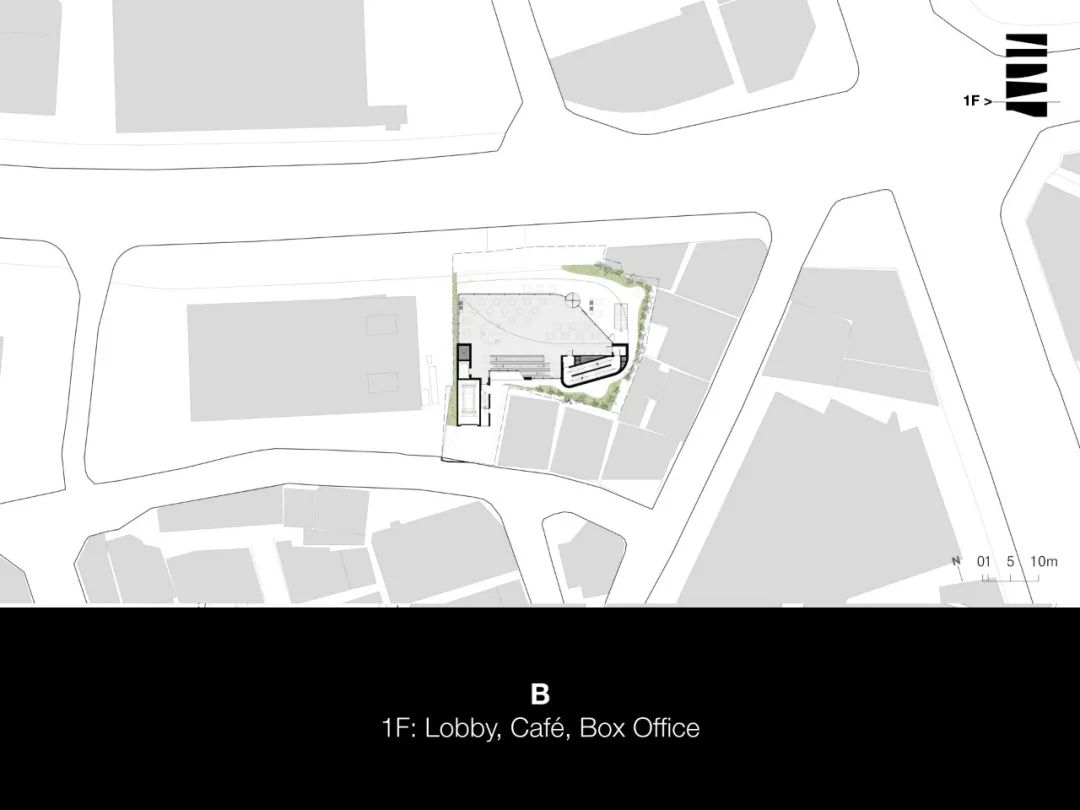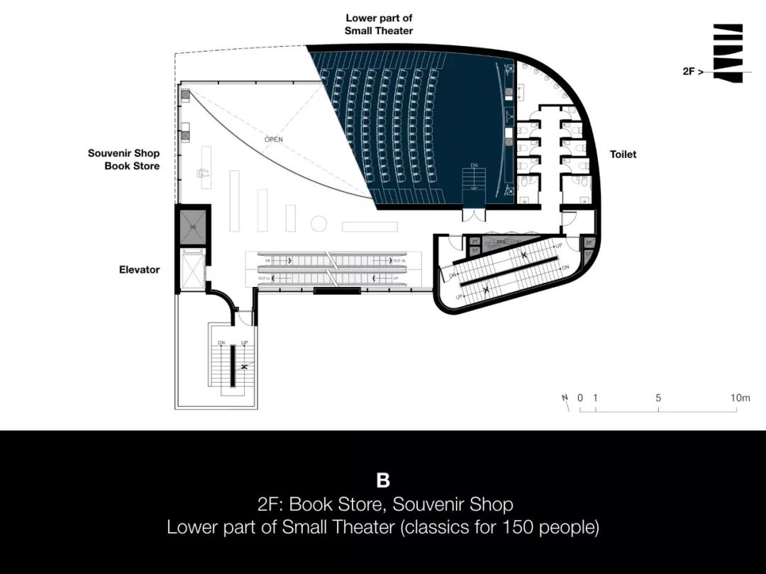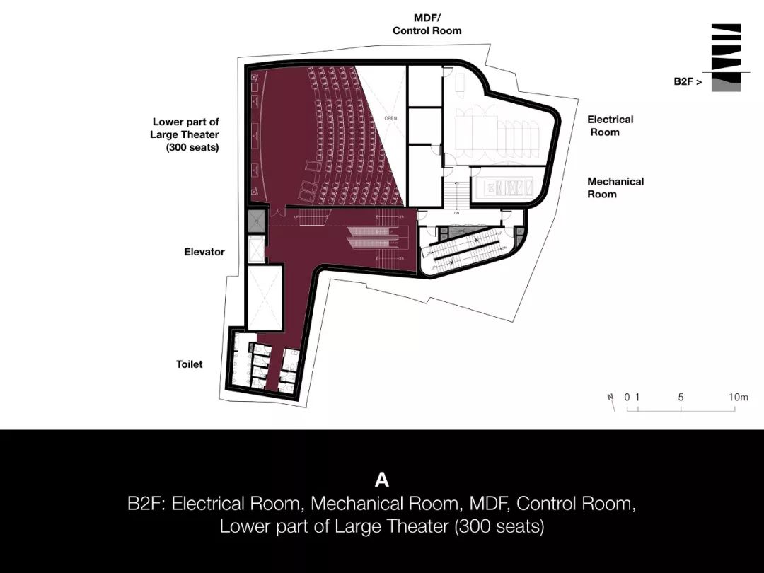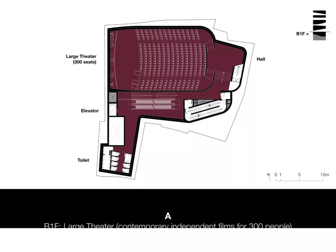 本次竞赛希望在这处曾经电影产业繁华的地区兴建一座记录并展示韩国电影发展历程的资料馆,地上建筑面积约4800平方米,包括一个220座的影剧院、资料档案室和阅览室、展览空间和媒体中心、讲堂、工作室和一些商业功能以及办公室。整栋建筑包含地上10层和地下3层。