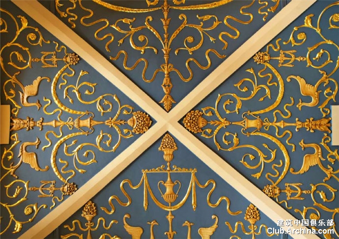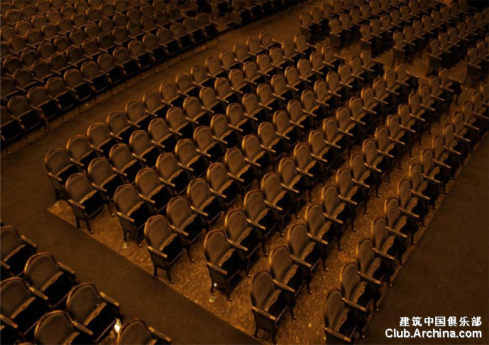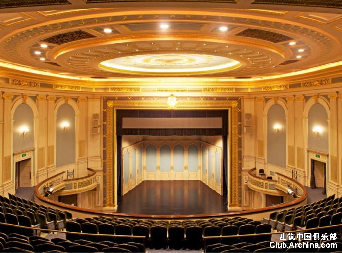 而我们脚下的舞台,在1959年改建为音乐厅时深度增加到8.35米,世纪初上海音乐厅的整体平移和修缮工程中,舞台的进深再次大幅增加,现为13.13米,不再是原来为电影院准备的小舞台,更加适应音乐厅的演出要求。而因为舞台的镜框式特征和改建时对原有设计形态的尊重,改建后与原来观众厅的关系并没有明显改变。 很多人是通过《中国达人秀》认识上海音乐厅的。那现代时尚的舞台布景、绚丽的灯光、争奇斗妍的各色达人、善于调动气氛的程雷、评委席上从容点评的周立波和伊能静,那种缤纷热烈与我眼前的音乐厅整体的气氛形成强烈的反差。但当镜头拉远和切换时,那西洋传统的蓝灰、暗黄和金色会从观众眼前掠过。其中出现次数最多的是舞台周边的镜框式描金花饰镶边,金色的周围也有一圈暗色的花饰映衬,以压制浮华的气息而使金色高贵而沉稳。 《中国达人秀》镜头里面上海音乐厅观众厅的这些细部片段,给人的感觉像一个长者包容且不同声色地看着另一个世界的热闹与欢乐。 2.