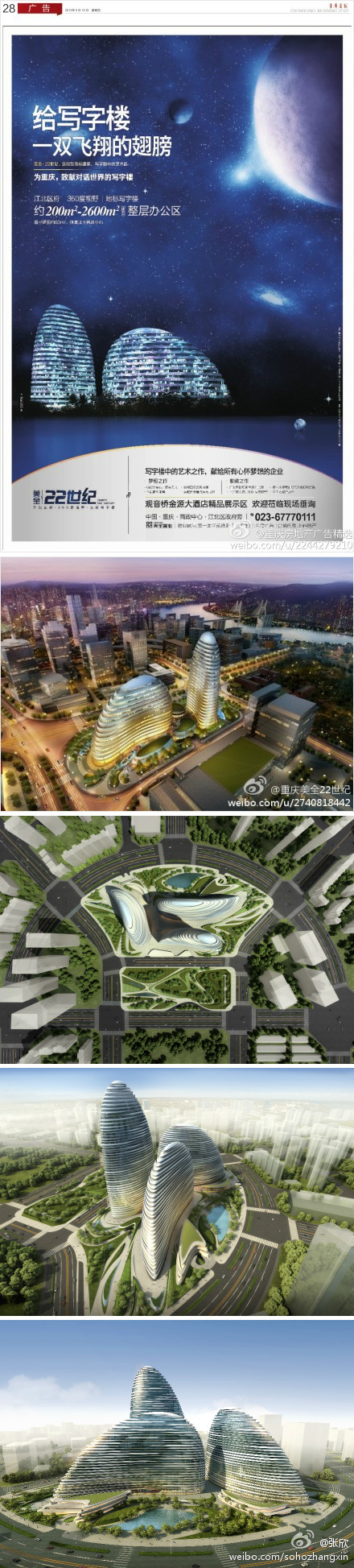前2图是重庆山寨版,后3图是《望京SOHO》