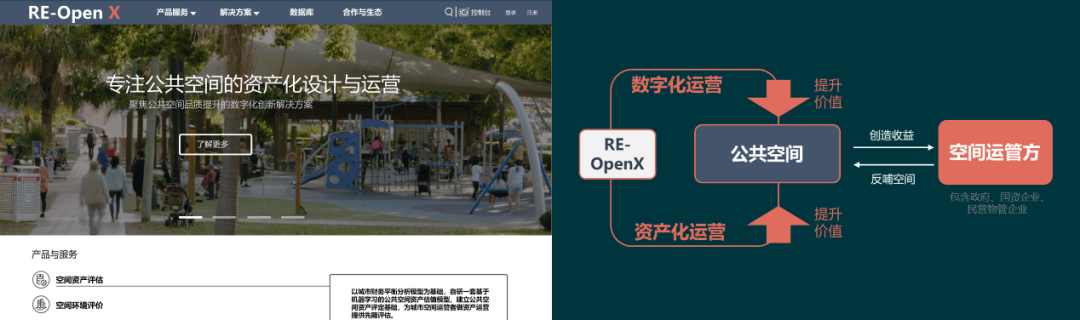 Re-Open X专注公共空间的资产化设计与运营,聚焦公共空间品质提升的数字化创新解决方案,通过三个关键动作,帮助公共空间运管方建立长效运作机制,重新看见空间价值:1. 用数字化技术与场景评估空间潜力,找出空间品质提升策略;2. 以货币化空间运营的价值以及周边间接价值,为空间运营创造现金流;3. 通过“设计+运营”,创造产品化的城市空间服务模式。这项新技术具体所提供服务包括:一套公共空间资产评估方法,一套公共空间环境评价体系和一个公共空间数字化运管平台。
