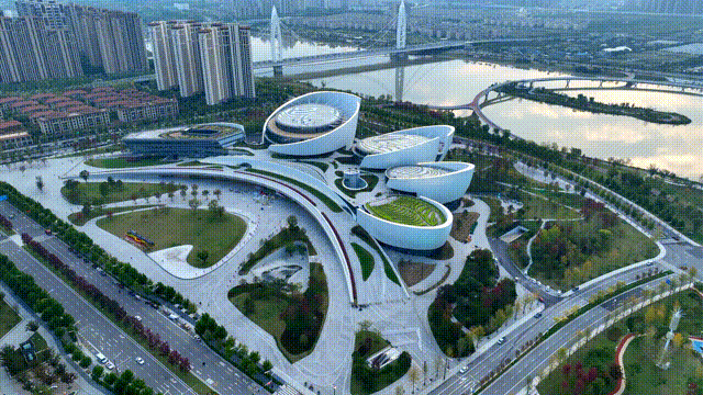 “一带一路”文化艺术中心与西安奥体中心主体育场隔路相望,总建筑面积约14.4万平方米。项目以传统乐器“埙”为原型,其设计的构型是从奥体引发的一条弧线,串联五个独立的形体,分别取意于中国传统五声音调“宫、商、角、徵、羽”,对应歌剧院、传媒中心、多功能厅剧场、音乐厅、电影院五个功能厅。中建八局西北公司工程设计研究院实施全过程设计管理工作。