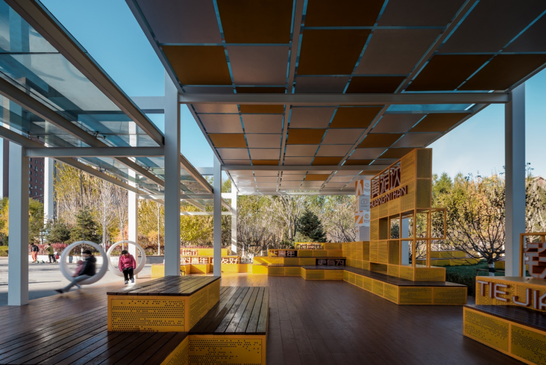 位于街道中段的“生活场:人才之芯”由原有口袋公园和楔形绿地改造而成,项目团队将原口袋公园里的廊架构筑物保留并改造成为供居民进行互动交流和休闲活动的人性化社交空间,让邻里生活于此被重新激活。