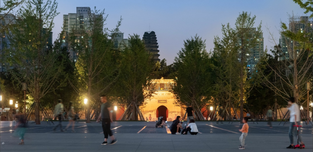西安小雁塔的深厚文化历史记忆,经过一次高质量的景观再造,从没落的困境中挣脱,以具包容性的全新面貌重新展现在人们面前。其优化的城市界面以可达性、行走舒适性更高的街道空间,吸引城市居民前往享受绿意盎然的文化熏陶;走进片区,宜静宜动的多元开放活动空间,让人们以自己喜欢的方式体验历史与生活的融合,进而重建历史街区与文物、城市和人的关系。