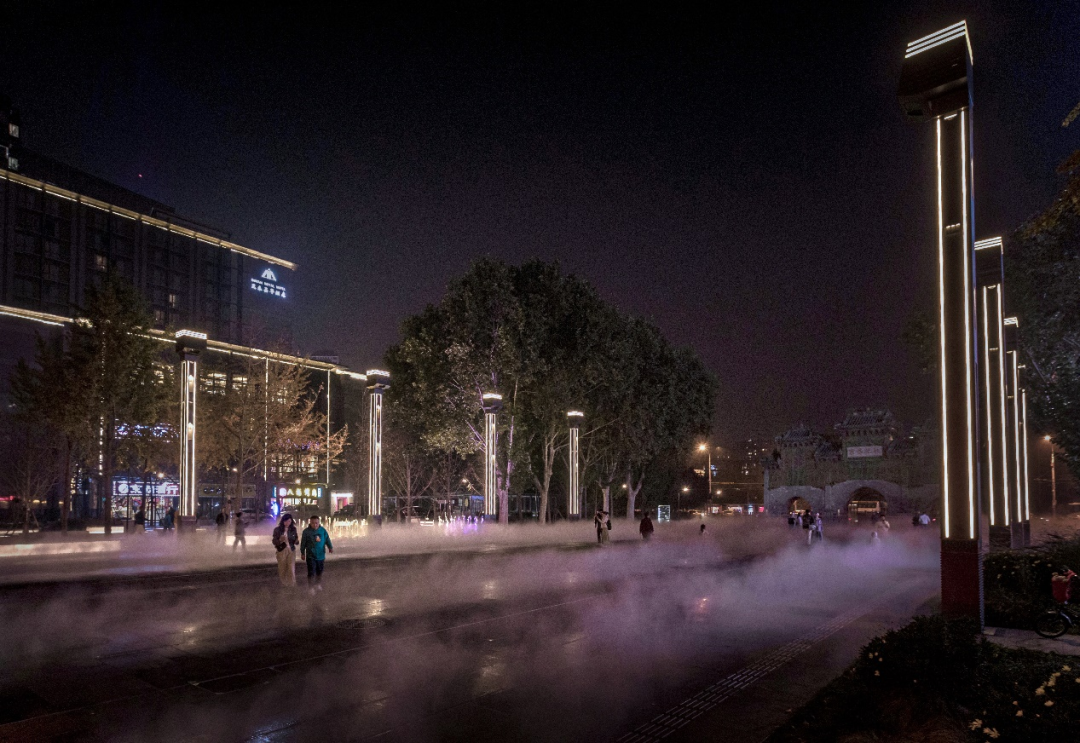 尺度开阔的广场空间,结合互动灯杆与各种独特的灯光艺术,为年轻人、艺术创作者及不同人群提供自在徜徉、灵感迸发的活动场,亦可举办市集等活动,使东岳文化广场成为更新街区中城市活力的引爆点。