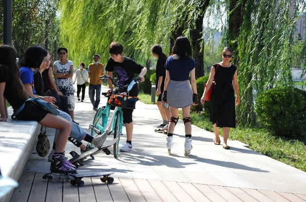 被誉为“北京塞纳河”“京城鸭川”的亮马河,自景观廊道建成,一洗往日荒芜的面貌,一条拥有特色多元的滨水慢行系统、丰富多样的驳岸形式以及完备的公共服务设施的5.5公里长的蓝绿风景廊,以多元包容、人人共享的滨水空间获得众多市民的喜爱,一跃成为城中休闲活动打卡热门地之一。
