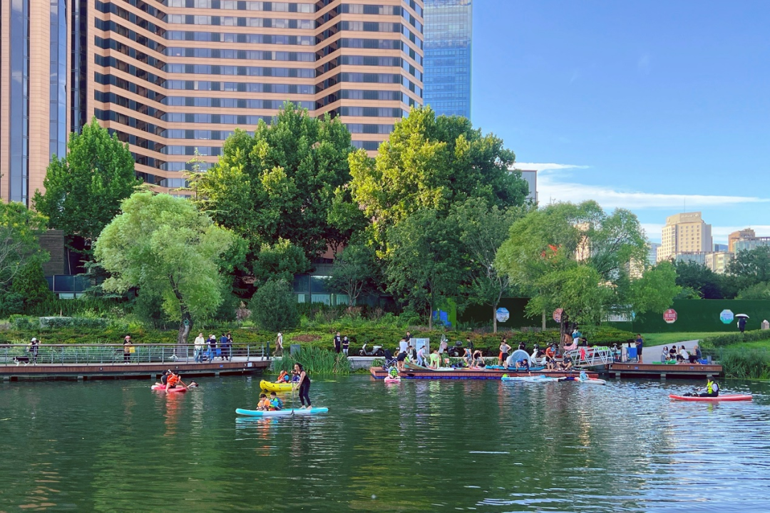 春暖花开之时,亮马河将以绿意和启航游船迎接,是独自前往或结伴同行的绝佳目的地,也是欢迎浆板、钓鱼、看书、游泳、遛狗、跑步、骑行等等不同类型活动的包容性城市公共空间。