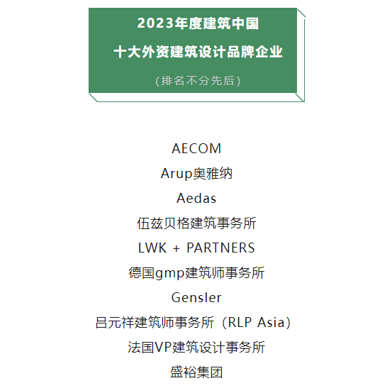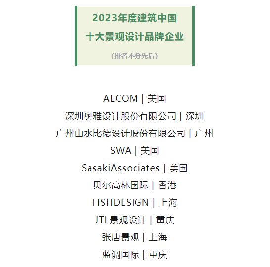 AECOM在2023年度第三届“建筑中国最具品牌影响力”评选中再度表现亮眼,第三次蝉联建筑设计最具品牌影响力外资企业TOP 1,并荣登景观设计最具品牌影响力企业综合榜单第一名!