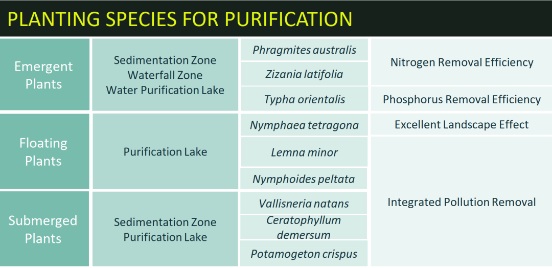 02 构建清水型湖体水生态系统:设计通过优化湖体岸线、雨水收集、动力引水、设置净化湿地、增加内循环等手段,构建完善水生态系统,稳定湖体健康。