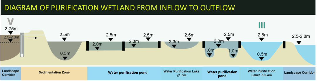尊重原生湿地环境,修复优化湿地生态基底,强化生态功能,融合低影响设施,增强景观价值和亲自然体验。