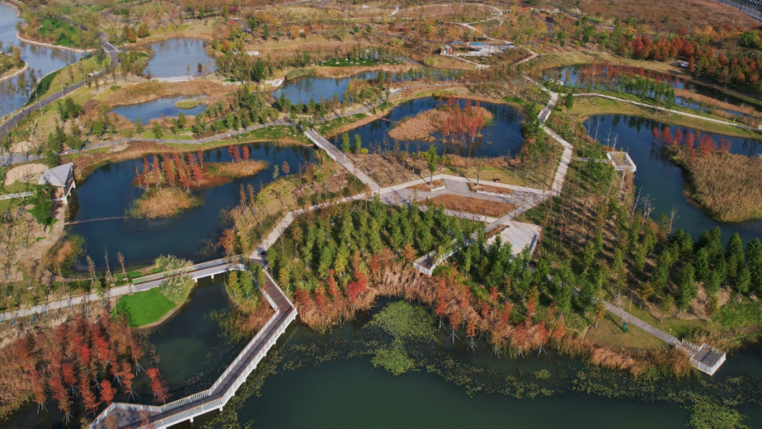 该项目极具城市韧性,以基于自然的解决方案为主导的景观规划方式构筑绿色基础设施,旨在帮助上海提高气候适应力,改善大规模的陆地和水生生态系统,修复湿地、新湖泊、森林和草地,为城市中的生物提供庇护所。