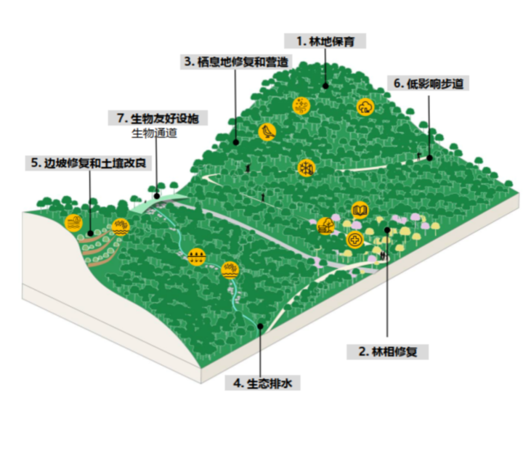 保护和修复山林生态系统的完整性和连通性,提升生物多样性,固碳增汇,并提供低影响的自然研学和体验活动。