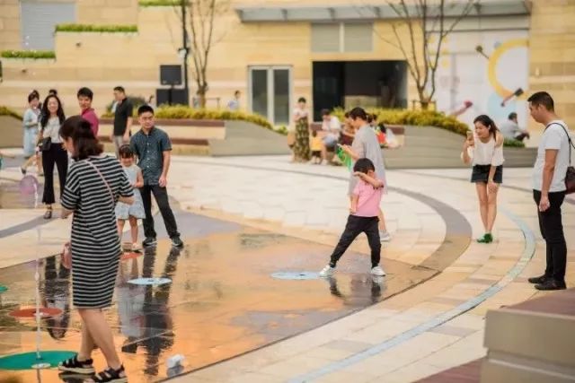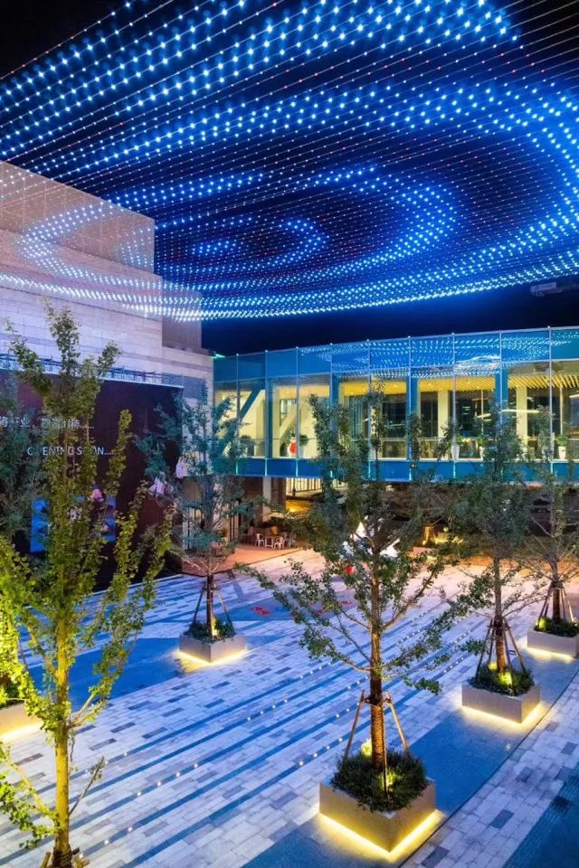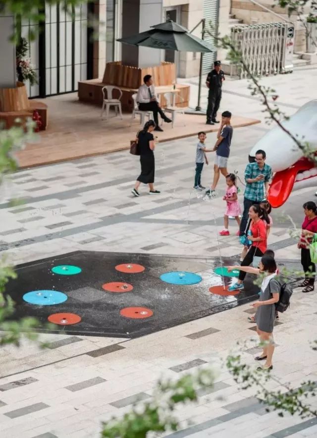 街区设计上充分考虑行人的行走规律,设置快行区、慢行区、外摆区等,发光座椅、星星灯带、感应式旱喷等设施增加气氛与效果。不管是白天和晚上,都能收货街区不同的美景和体验。
