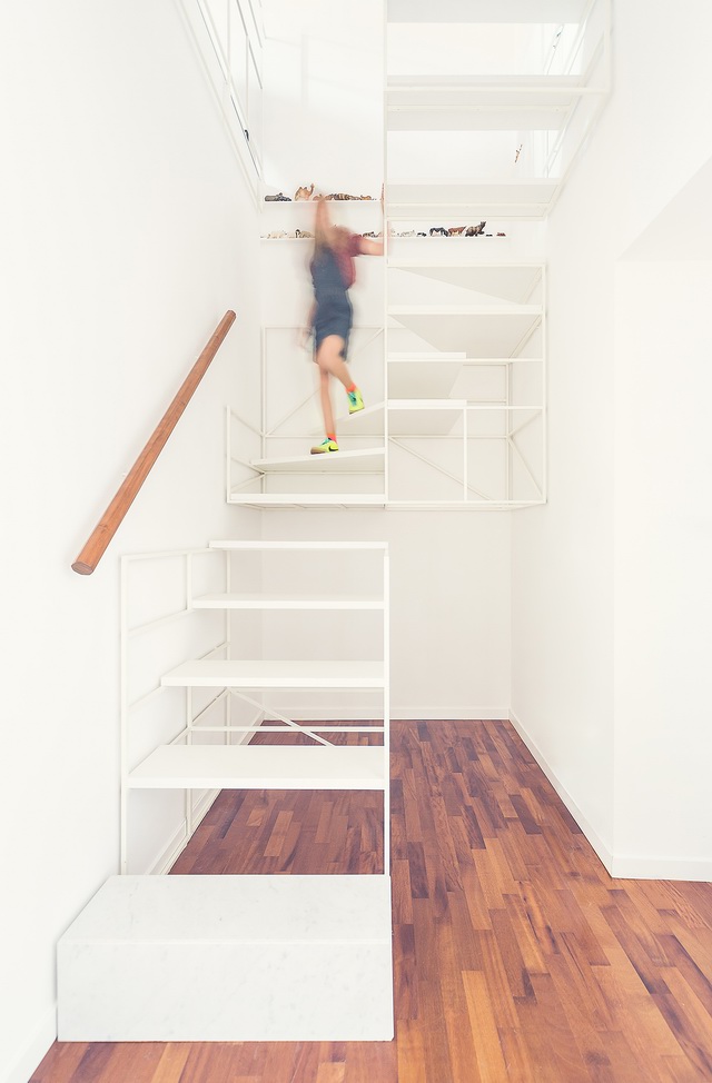 我们常见的楼梯大多笨重或者相貌平平,然而有时他之于生活中的我们是不可或缺的。其作为一个部件常常在最不经意的细处流露出人们心底对美好生活态度,它们往往处于一个相对隐蔽的角落羞于见人。然而来自米兰的建筑师Francesco Librizzi却对楼梯的设计有着独到的手法,其设计让楼梯显得异常轻盈,纤细的钢筋甚至让人怀疑它的承载能力。但它们的确显得非常优雅,仿佛空间中的一个运送人们上下的透明体一般存在格外清新。相信这种上上下下的过程一定非常有趣。