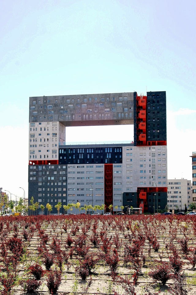 MvRdv与Blanca Lleo被委托在马德里东北郊外Paul de Sanchinarro建造一个大型集合住宅,这是个被杂乱单调的低层建筑充斥着的地区,MvRdv设计了一个带内院的典型的水平方向住宅街区,然后