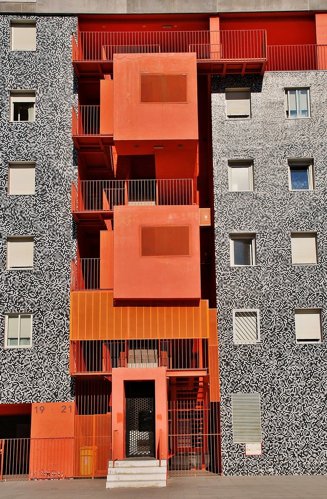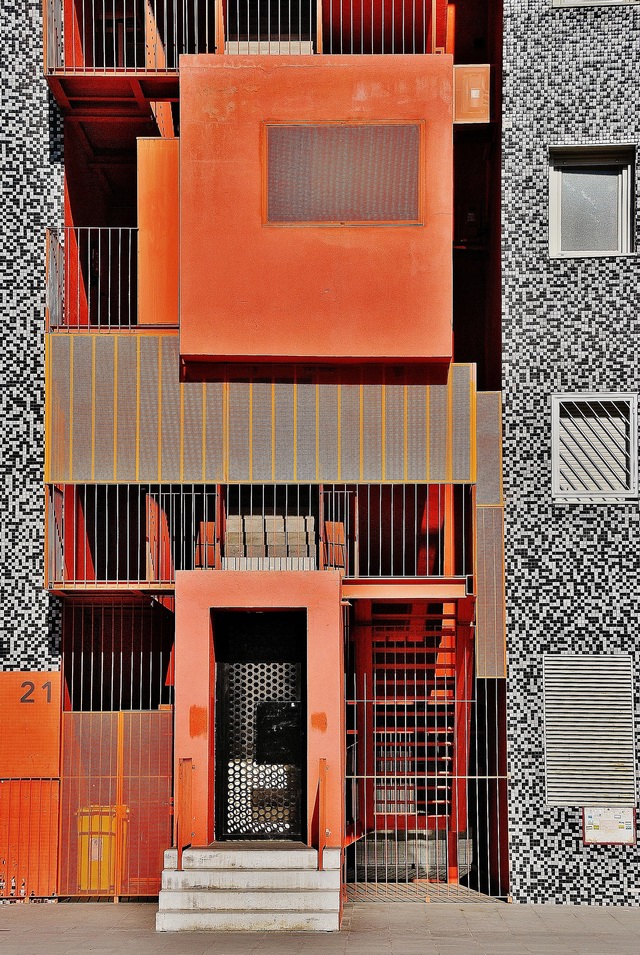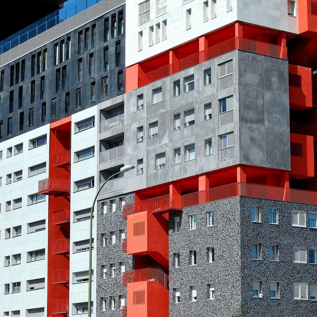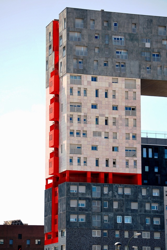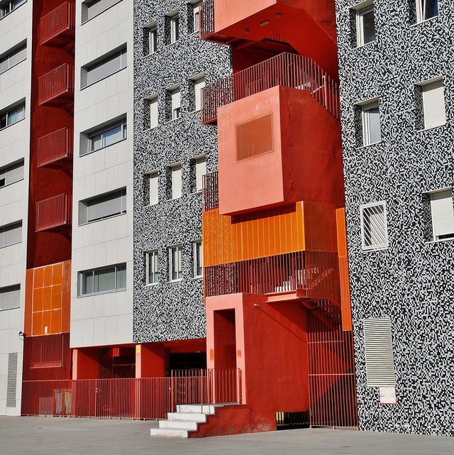 米洛德(Mirador)住宅由荷兰建筑师组合MvRdv设计位于西班牙马德里桑其那罗地区,建成于2005年。在它巨大的空间里,设置了众多的种类丰富的小户型,大胆的外立面不同色块的设计,反映了设计师设计风格与西班牙传统风格的强烈反差;为集合住宅的设计提供了一种新的尝试。