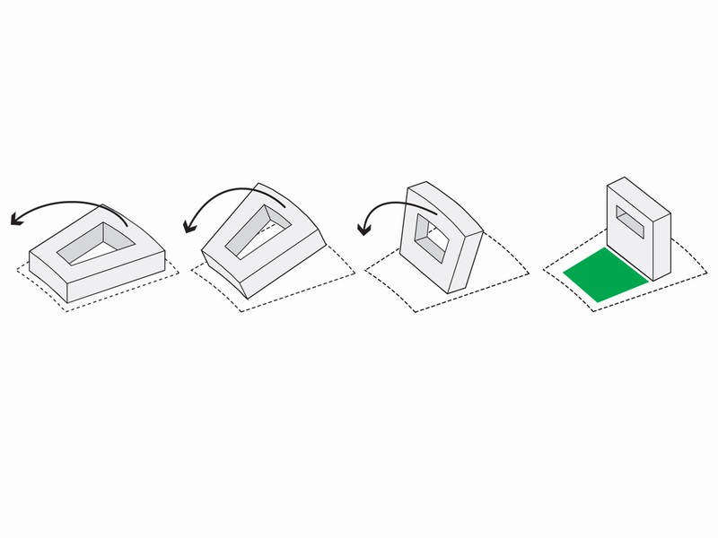 通过“密度”的极限化在有限的客观条件下最大化和最优化地利用土地,从而改善建筑密度分配不均、建筑用地不合理的现状,这里的密度并不是指在平面占据更大的面积,而是延伸到整个3D空间,追求的是在有限条件下扩大建筑的空间容量和功能容量。Mirador住宅运用了MvRdv提出的实现“三维都市”概念操作手法中的“翻转(Flip)”方式
