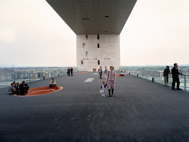 此外,建筑师强调的不仅是延续的建筑空间,而且强调人的行动、空间知觉和视觉会与建筑环境产生互动性。由此,离地40米的平台对于人来说是一个绝佳的观景场所,站在平台上即可眺望马德里市区,又能看到远处的Guadarrama山脉。通过人与建筑的互动,获得不同的景观与观景角度,从而使在建筑外和建筑内的人都可以从单调乏味的、千篇一律的街道环境中逃离,获得不一样的体验。