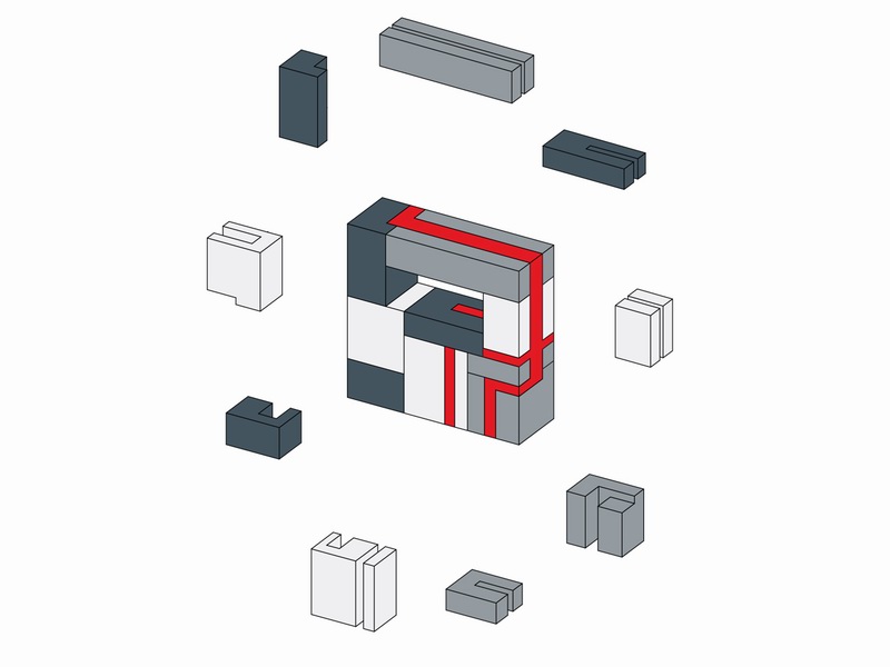 9个相对独立的体块堆叠、粘合在一起,通过之间的交通空间串接形成新的21层的整体,建筑师们自己把它称为“超级街区(superblock)”。它们在竖直方向上围绕着中央巨大的瞭望台,形成独特的垂直邻里关系。