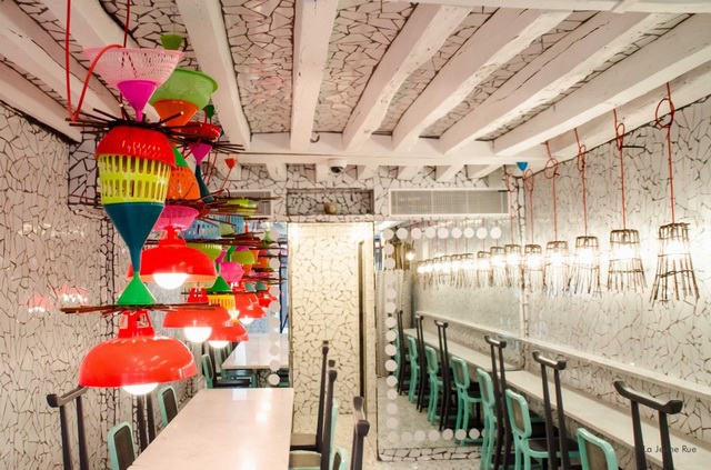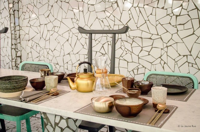这座位于巴黎的韩国料理餐厅由意大利设计师 Paola Navone设计(多么国际化的一个小餐厅啊……)。餐厅位于一个类似夹缝的空间,面积非常小,所以Navone的每一处设计都要经过仔细思考,努力创造出一个舒适且能够反映食物品质的空间,并且具有一定的趣味性和利于社交。
