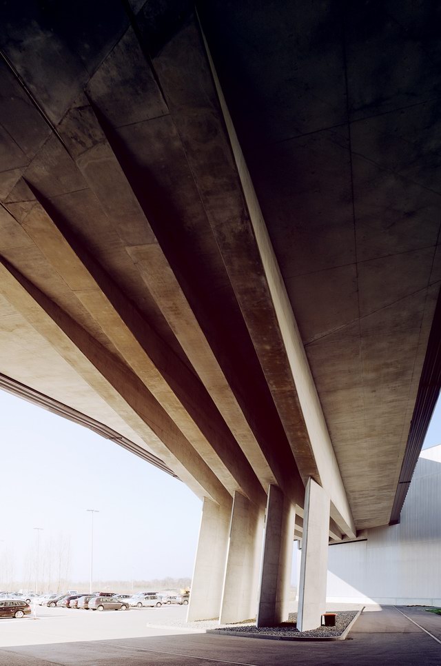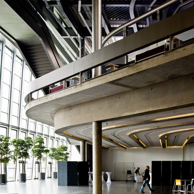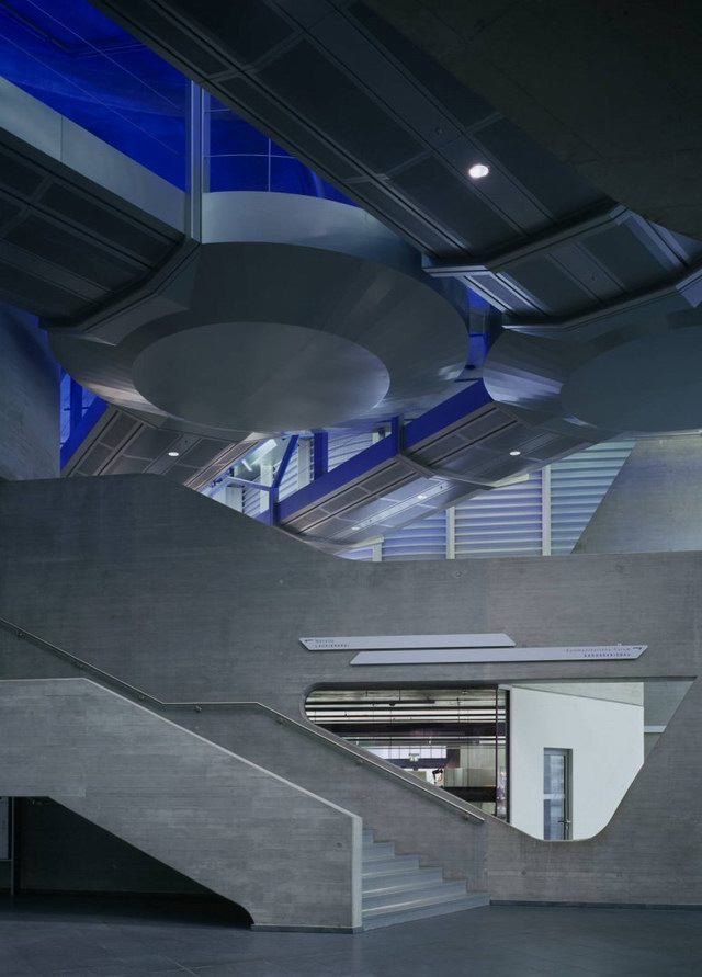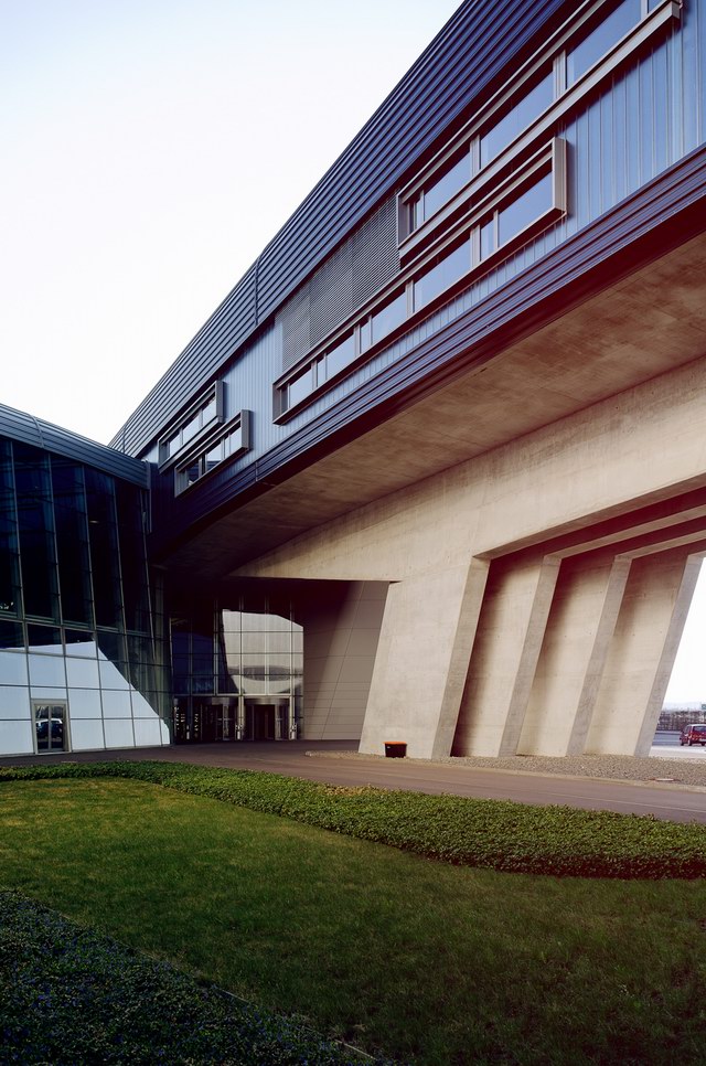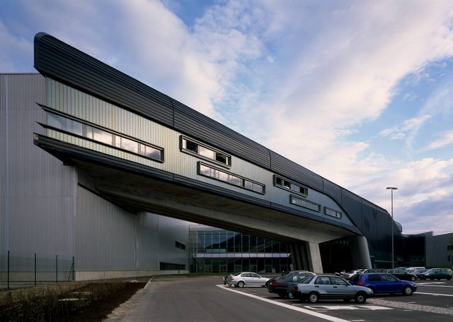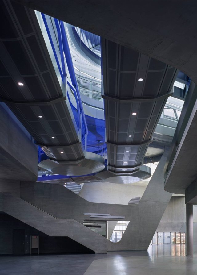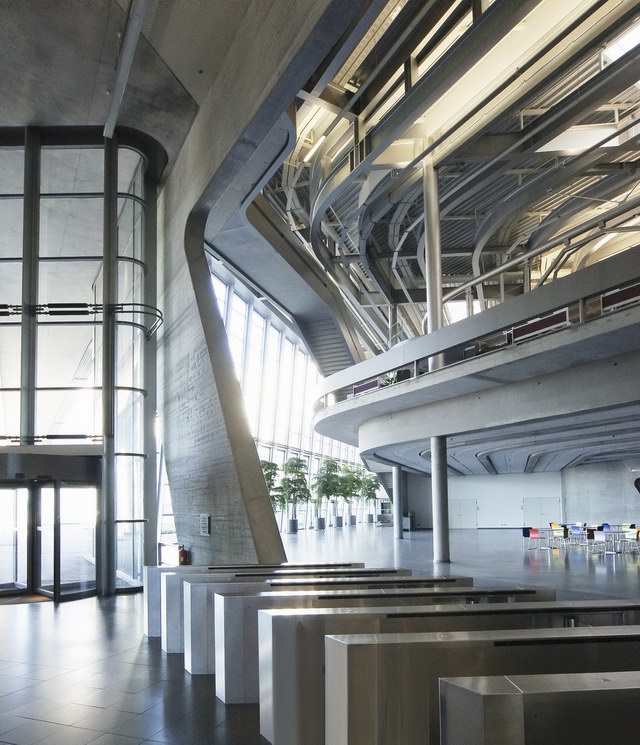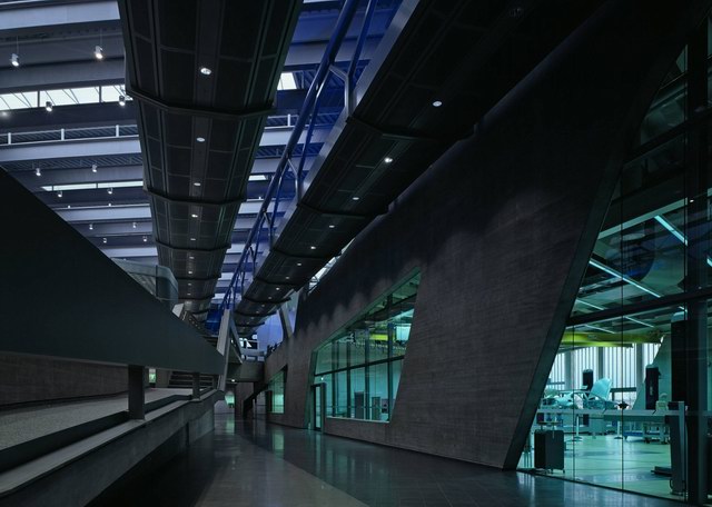 2005年德国莱比锡,宝马汽车公司中央工厂(BMW Central Building)落成。这是扎哈·哈迪德(Zaha Hadid)最具颠覆性的建筑工程之一,位于宝马综合工厂中的这块建筑充当通道的作用,将办公中心与生产大楼连接了起来,其外部呈现了奇异的对角线支撑结构,但真正令人惊讶的部分还是在这座大楼里边。