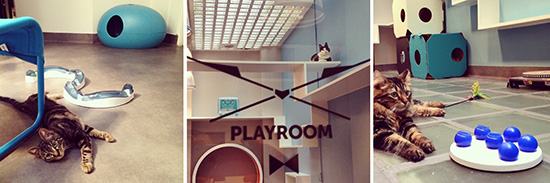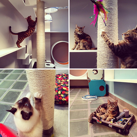 舒适而现代,一个 猫咪标准间大约4平方米,配备有玩具和各种适合猫活动的设施,甚至还有娱乐厅和专业人士伺候这些猫客人。