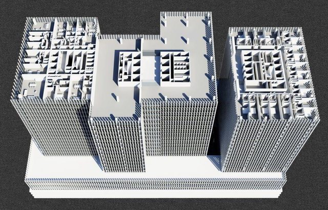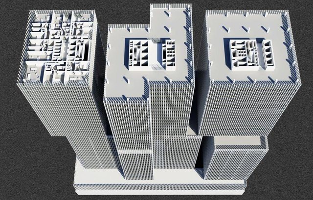 De Rotterdam大楼的体量很简单,几个细长的矩形相互错动叠加起来,十分具有力量感!